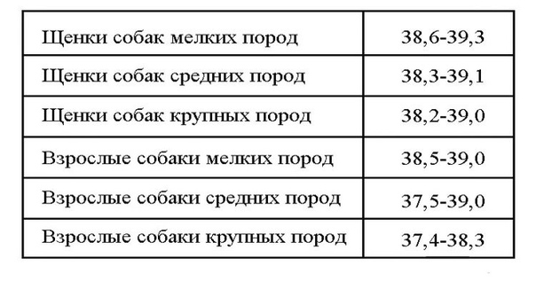 Нормальная температура тела у щенков