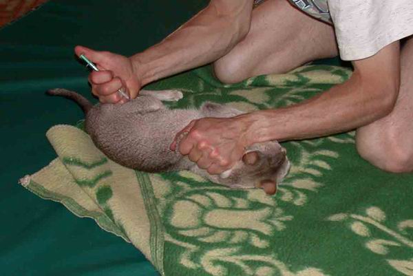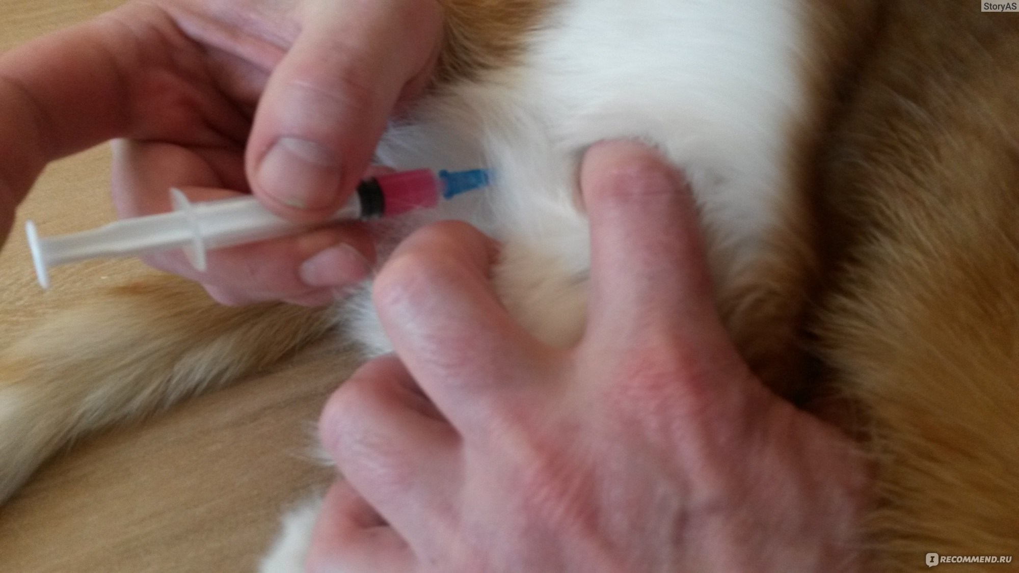 - Извлекать иглу нужно в том же направлении, как и в момент введения шприца. После извлечения иглы можно отпустить кошку.