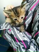 Осталась одна. Самая маленькая. Люди писали и спрашивали, когда можно придти посмотреть и забрать. Тут я поняла, что с этой кошкой расставаться совсем уж не хочется. Она самая первая из всех пошла на контакт с людьми и уже в месяц забиралась на диван, чтобы уснуть с хозяевами. Первой начала мурлыкать и играть, прячась в хозяйский кроссовок. На семейном совете было принято однозначное решение — оставить эту кошку у себя. Так третий котенок обрел свой дом.