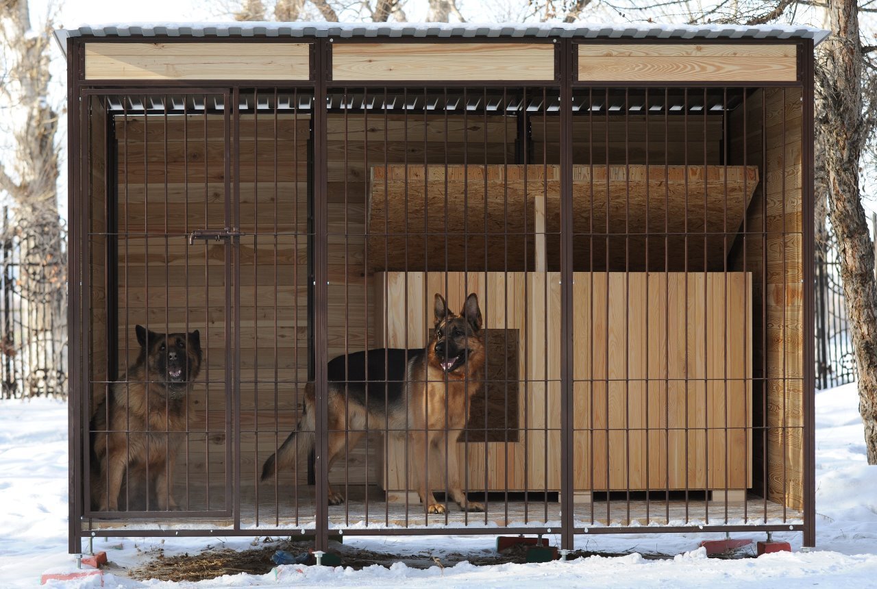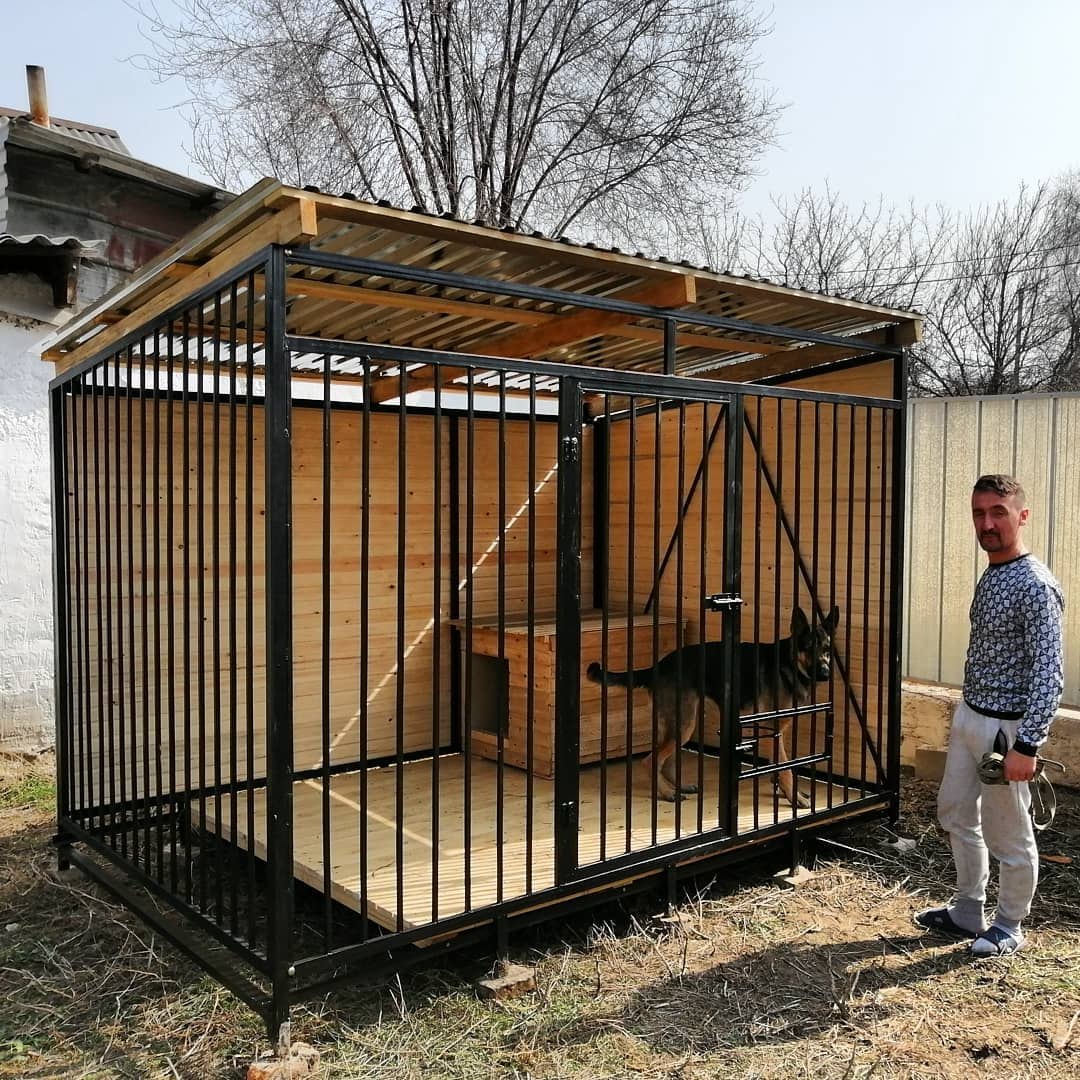 Вольеры бывают разных форм и размеров. Главное, чтобы он был достаточно вместительным, чтобы щенок мог встать и развернуться в нем и сейчас, и когда вырастет.