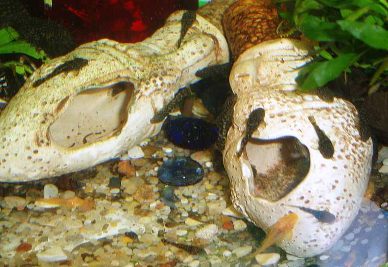 Их можно смело держать вместе с неагрессивными рыбками — дискусами, барбусами, молли, тетрами, данио, гуппи, меченосцами, карликовыми цихлидами, скаляриями, плекостомусами, расборами.