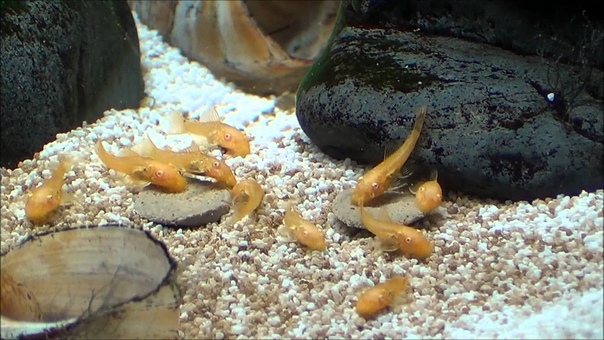 Мальки будут жить за счет содержимого желточного мешка пару дней, а через неделю начнут есть жареную пищу. Когда они родятся впервые, вы увидите, как они почти бесконтрольно «прыгают» по дну резервуара.Скоро они смогут лучше контролировать свои движения и будут рыть дно в поисках пищи.