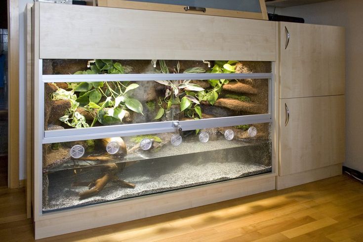 В террариуме обязательно должны быть вентиляционные отверстия в стенках и поддерживаться оптимальный уровень влажности с учетом вида рептилии.