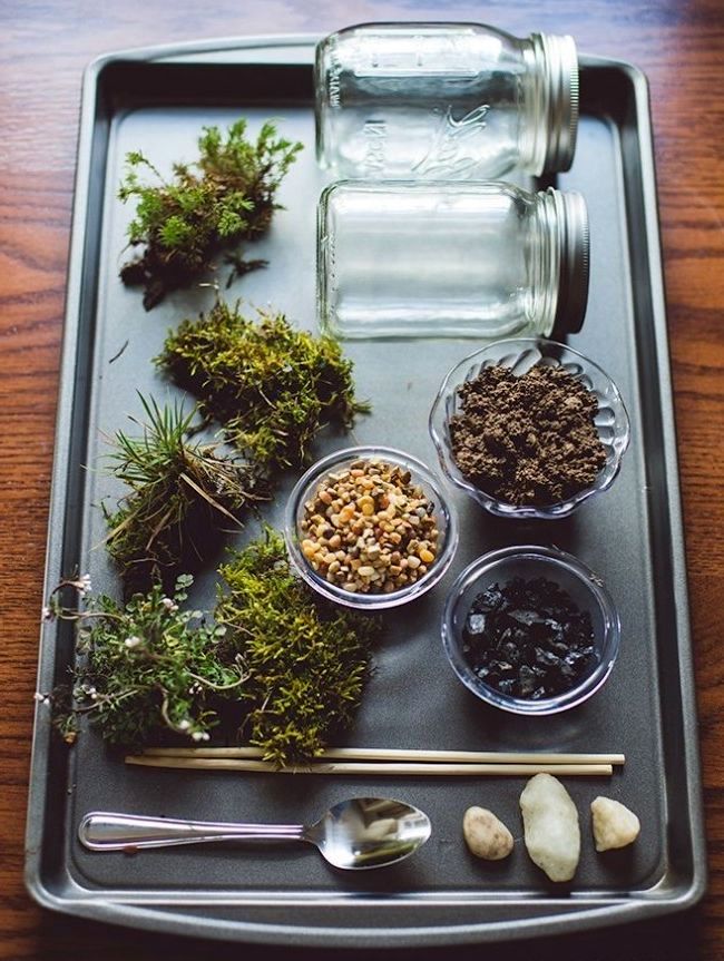 - Палочки для еды, щипцы или пинцеты — ваши друзья! Используйте их, чтобы поместить в банку небольшие растения и аксессуары. Попробуйте использовать деревянную ложку, чтобы придавить почву, небольшой шпатель, чтобы переместить почву, и даже мадлер. Просто покопайтесь в своих кухонных принадлежностях в поисках нужного инструмента!