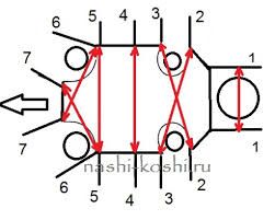 - «спину» — по горловинке, нижнюю и боковые сторонки — до засечек;