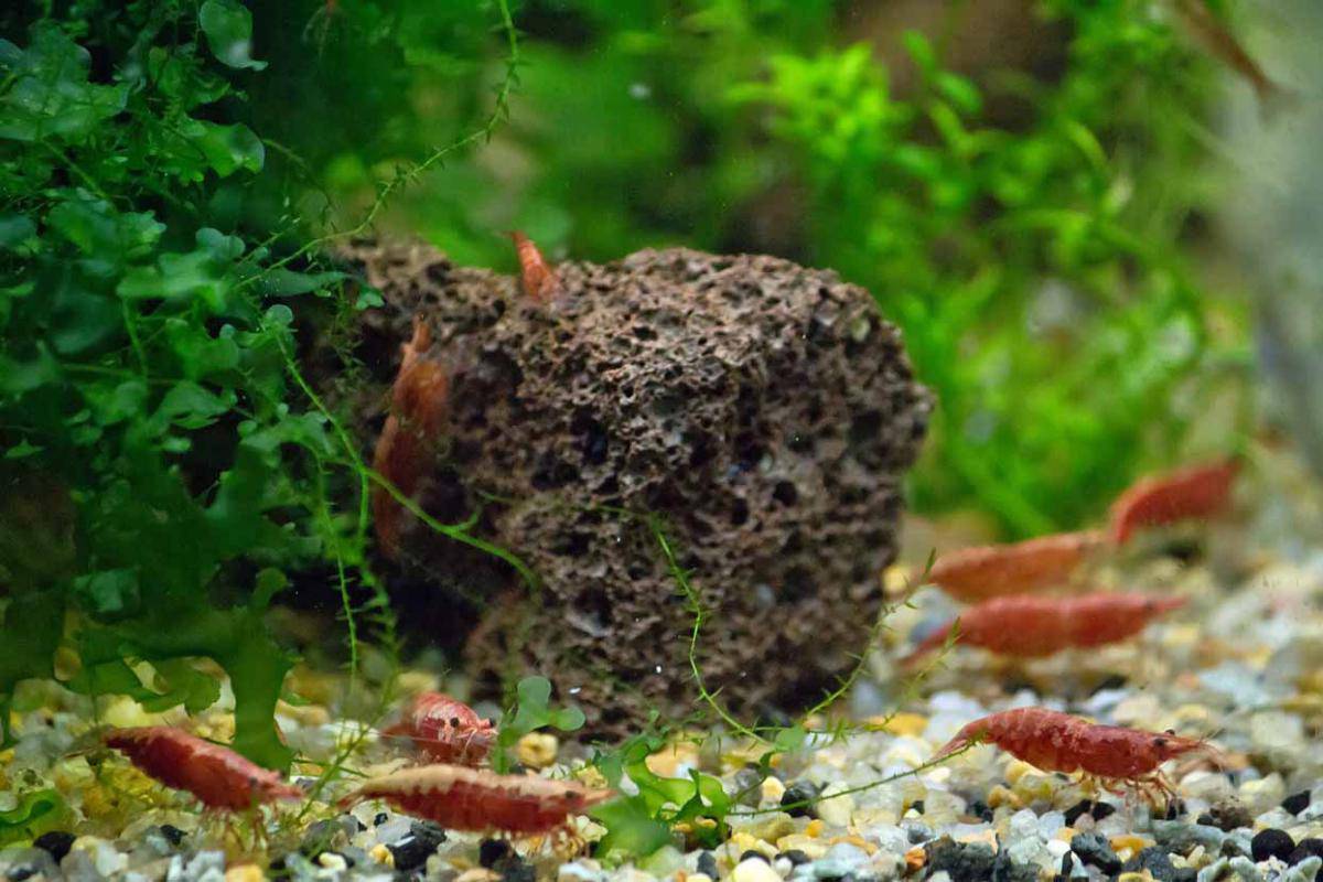 Не переборщите с растениями, в больших количествах они могут заметно окислять воду. Растениям нужно много света, а креветки свет не очень любят. Главная функция растений и декораций в креветочнике — служить укрытием для ваших питомцев, особенно в период линьки.