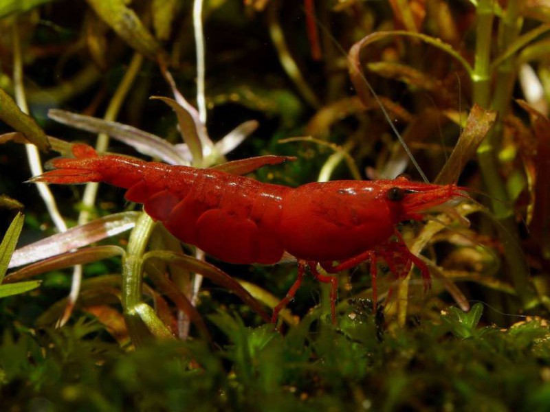 Neocaridina davidi var. red, англ. cherry shrimp) это самая популярная креветка в пресноводном аквариуме. Она неприхотлива, хорошо приживается в разных параметрах и условиях, заметна, к тому же мирная и поедает остатки корма в аквариуме.