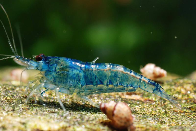 7. Креветки Blue Bolt Проверить цену на креветок Blue Bolt (Deep Blue)Креветки Blue Bolt — потрясающий вид карликовых пресноводных креветок. Caridina cf. cantonensis var. «Синий гром» — это их научное название. В них сочетаются синий, зеленый и желтый, смесь ярких цветов.