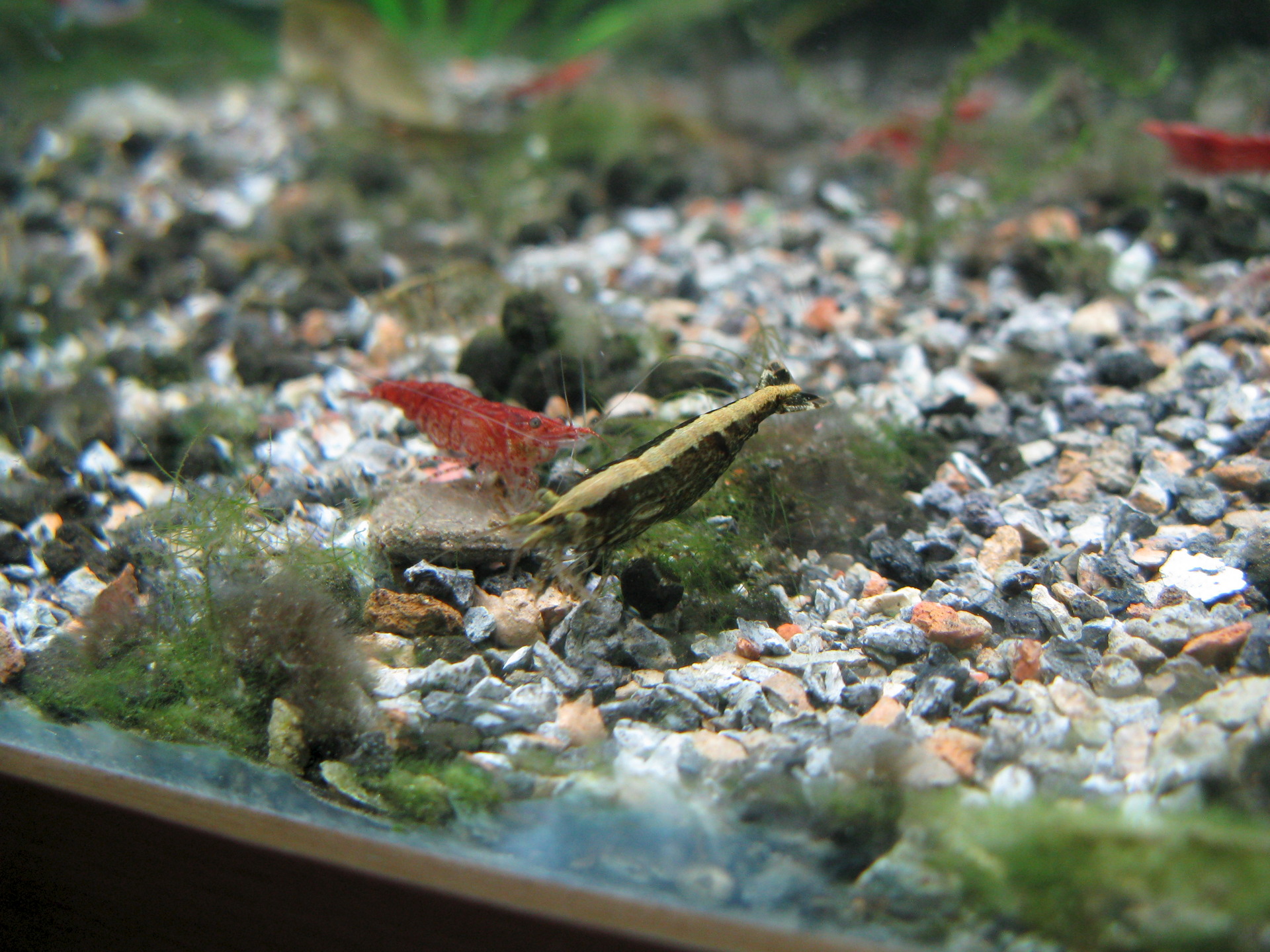 Важным вопросом является окраска креветок. Чем темнее грунт и растения, тем ярче они выглядят на их фоне, если же содержать их на светлом фоне, то они становятся бледнее.