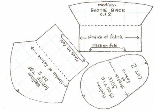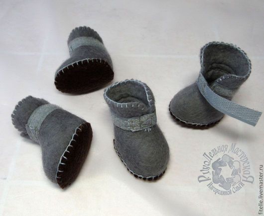 Что можно посоветовать? Подготавливая материал на четыре ботинка, следует учесть, что шить надо попарно. То есть сначала два передних, потом два задних ботинка. У передних и задних лап есть свои индивидуальные особенности, поэтому и размеры разные. Для подошвы лучше выбрать шершавый материал против скольжения лап.