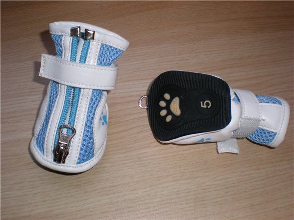 В настоящее время в сети, кроме свитеров для собак, бурно обсуждается проблема покупки обуви для домашнего питомца. Она защитит пушистые лапы от уличного колючего мусора, стекла, металла. Производители снаряжения для собак уже обо всем позаботились. Теперь можно купить обувь на любой вкус и цвет. С украшениями, бантиками, стразами.