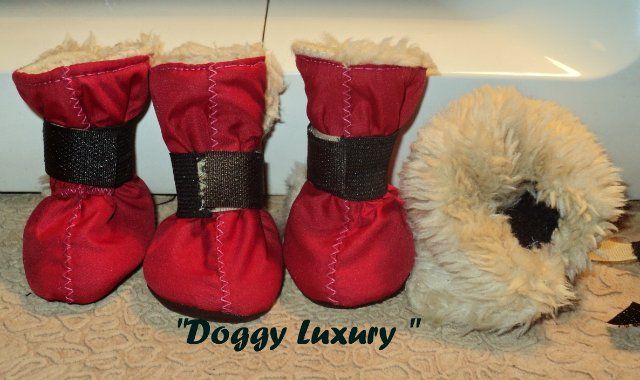 Я вам не рекомендую для первого раза брать обувь с коротким голенищем,так как питомец не зная,что такое обувь,будет пытаться снять ее с лап.Необходимо,чтобы обувь плотно прилегала и не спадала во время носки.
