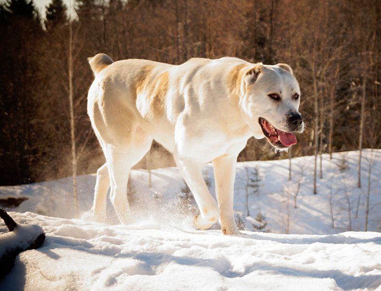 Алабая нужно выгуливать около 2 часов. Это активная порода, приспособленная к длительным переходам вместе со стадами овец.