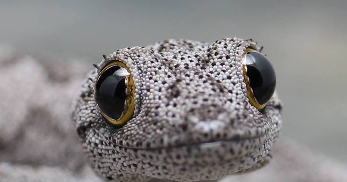 Дело в том, что гекконы — ящерицы ночные. Это сразу станет ясно, если заглянуть им в глаза. Глаза у геккона золотистые, с узкой щелью, как у южноамериканского крокодила каймана. Ночью, во тьме, эта щель-зрачок расширяется. Да и вообще каспийский геккон похож на миниатюрного каймана. Серо-коричневое тело с черными поперечными полосами покрыто правильными рядами крохотных шпиков — наподобие осетровых «бляшек». Брюшко у геккона грязно-белое.
