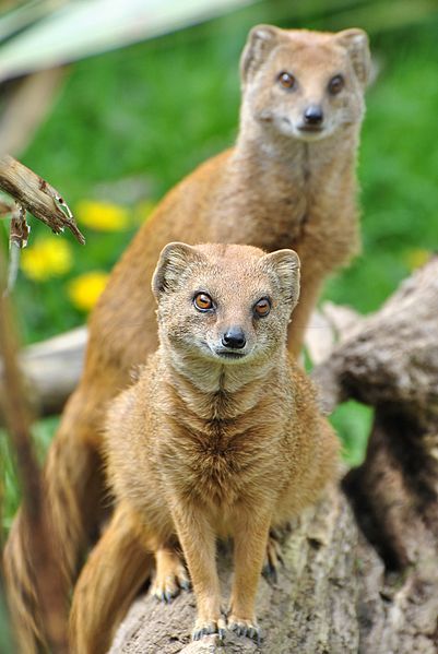 Так, например, карликовый мангуст. Вид это очень мелкий, весит он не более 350 граммов, поэтому очень уязвим для большого количества хищников. Ему нужно постоянно быть в курсе того, что происходит в данный момент как на земле, так и в воздухе. Это особенно важно во время поиска корма. Групповой образ жизни позволяет этим животным уцелеть во враждебном мире. Группы карликовых мангустов состоят из 2-20 взрослых особей (в среднем из 9), во главе группы стоит размножающаяся самка.