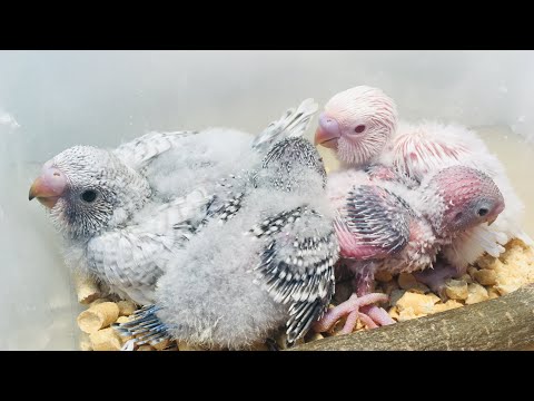 Когда они впервые вылупляются, у попугайчиков вообще нет перьев, и их глаза закрыты. К тому времени, как их глаза откроются, они немного отрастут. Когда им около двух недель, у них начинают расти перья булавки, которые представляют собой маленькие жесткие «корни», которые в конечном итоге превращаются в полноразмерные перья.