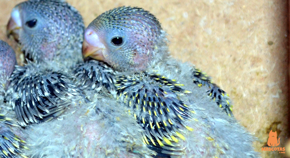 Малыши появляются в мир практически голыми, всего с несколькими пушинками на спине, слепыми, глухими и беспомощными. Небольшие волнистые попугайчики обладают несоразмерно большой головой, длинной шеей и тонкими ножками. Подобная физиология позволяет прибывать только в положении лёжа.