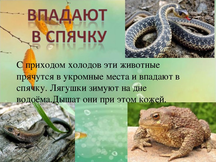 На период зимовки у пресмыкающихся накапливаются запасные питательные вещества, а интенсивность обмена веществ резко падает.