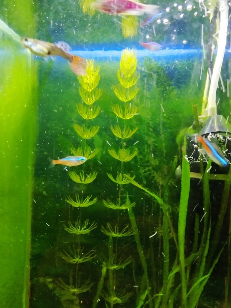 Хорошими биофильтраторами служат такие растения, как ндийский папоротник, элодея, роголистник, илогаросифон. А вот наличие папоротника цератоптерис будет своего рода индикатором – подходят ли условия содержания для гуппи. Если корни этого растения подгнивают, и он начинает всплывать к поверхности воды или и вовсе гибнет, – значит условия для рыбок являются непригодными. А вот если папоротник благополучно растет у дна – все хорошо.