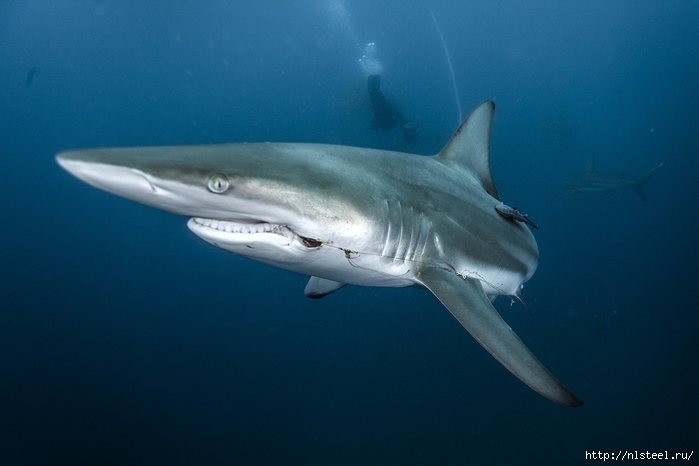 Дайверы, бороздящие просторы Тихого океана, периодически встречают среди волн угрожающие плавники. Это синяя акула, обитатель прибрежных вод. Укусить они могут чисто из исследовательского интереса, поскольку на обед предпочитают кальмаров, осьминогов и морских птиц.