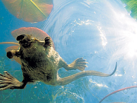 Бобр.Бобр ведёт полуводный образ жизни, большую часть времени проводя в воде. Бобры знамениты тем, что сооружают плотины на мелких речушках Живут бобры в норах, если нет возможности вырыть нору, бобр строит хатку.