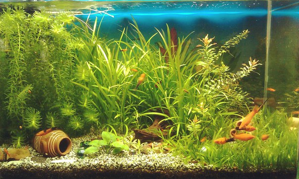 4. Благоустроенный профессиональным оборудованием аквариум, оснащенный мощным дополнительным внешним фильтром, обслуживается гораздо реже. При снижении производительности внешнего фильтра приблизительно на 50%, рекомендуется его тщательная промывка — это около одного раза в два месяца. 5. Информация по плотности заселения рыб в аквариумах, приведена только для количества воды, фактически налитой в аквариум, то есть без учёта объема грунта, украшений, внутренних фильтров и т.д.