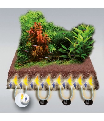 Если в аквариуме много рыб, то используются специальные кабели для нагрева воды. Они фиксируются на дне водоема с помощью присосок и прячутся под грунт. По всей поверхности дна кабель выкладывается в форме зигзага. Работая, обогреватель создает небольшую циркуляцию воды, которая подталкивает к корням растений питательные элементы. За счет этого растительность развивается быстрее, не болеет, что в итоге способствует формированию благоприятной подводной микрофлоры.