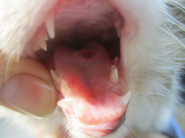 Владелец может заметить, что кот голоден и просит еду, но, приступая к трапезе, сразу же отказывается от нее. Животное жадно обнюхивает лакомства, но взять их в рот не может, так как язвочки сильно болят и мешают принимать пищу. В тяжелых случаях заболевший может отказываться и от воды: тогда придется вливать чуть подогретую воду через шприц без иголочки.