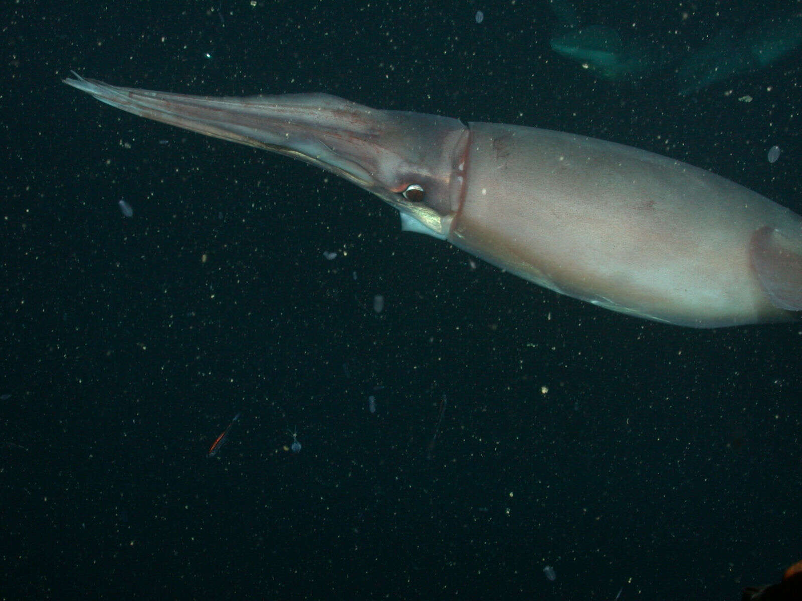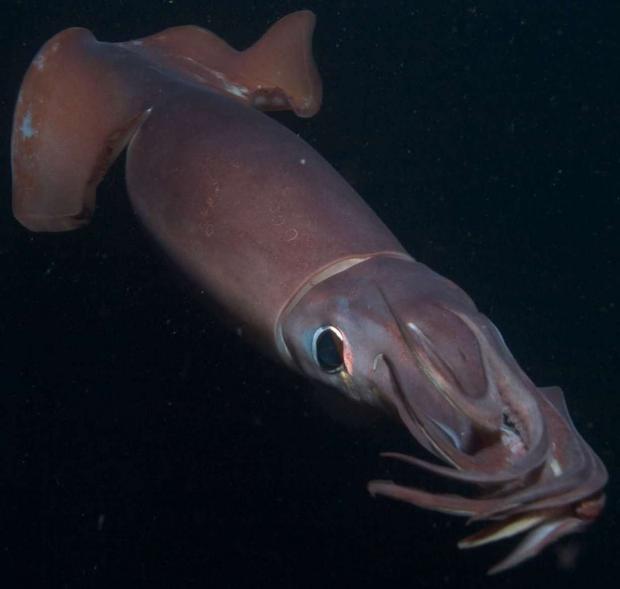 Запечатленный на фото экземпляр считается не самым крупным. По данным открытых источников, длина таких кальмаров может достигать четырех метров.