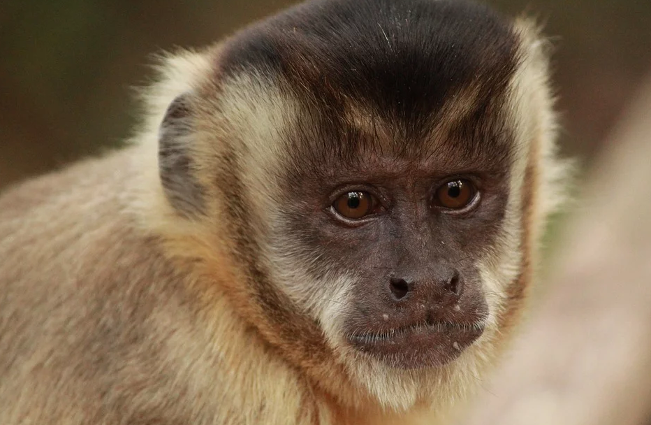 Симпатичный портрет любопытной дикой обезьяны-капуцина, смотрящей в камеру крупным планомPREMIUM