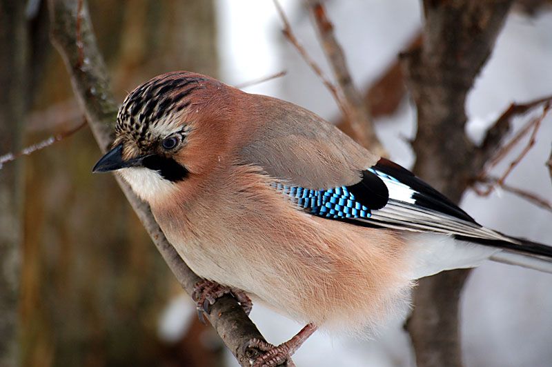 Сойка – это небольшая по размерам птичка с весьма необычным поведением. Сделать ее фото в диких условиях практически невозможно, так как она очень осторожна и предпочитает скрываться в средних и верхних ярусах деревьев.