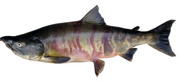 Увеличивается в длину и высоту при созревании икры. В этот момент на удлиняющейся челюсти вырастают крупные зубы. Ее серебристую тушку разбавляют зеленые, бурые, оливковые пятна. Сбоку появляются поперечные полоски, интенсивность цвета которых увеличивается с каждым днем.