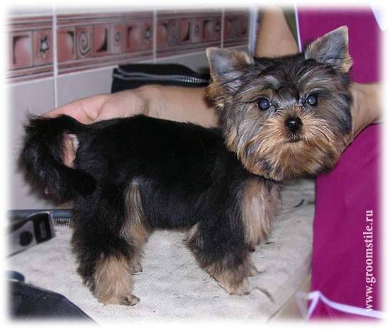 Йорку в возрасте до 4-х месяцев требуется только гигиенический уход! Причёски делать рано, но общую форму стрижки поддерживать нужно, например, выстригать шерсть на лапках и ушах, подстригать обсеченные кончики шерсти.