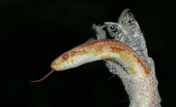 Узорчатый полоз (лат. Elaphe dione) в процессе сбрасывания старой шкуры