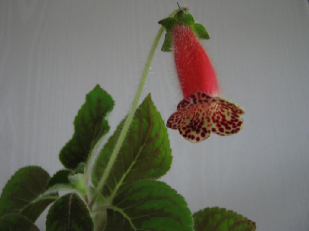 - Приятная происходит из Колумбии, где этот вид облюбовал высокогорные области. Стебли слабого зеленого окраса, поросшие редкими беловатыми волосинками. Листовые пластины овальной формы, зеленые с коричневатыми жилками и серебряными полосочками. С внешней стороны цветок алый, а в середине трубка белая с многочисленными фиолетовыми точками.