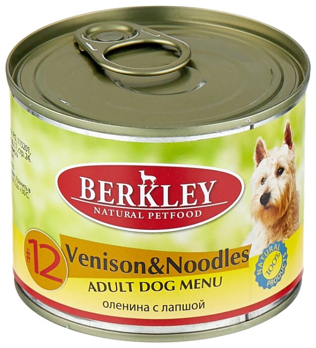 Беркли 200г д/собак №12 оленина с лапшой (1/6)[57472] конс.Беркли 200г д/щенков № 1 цыпленок с индейкой (1/6)