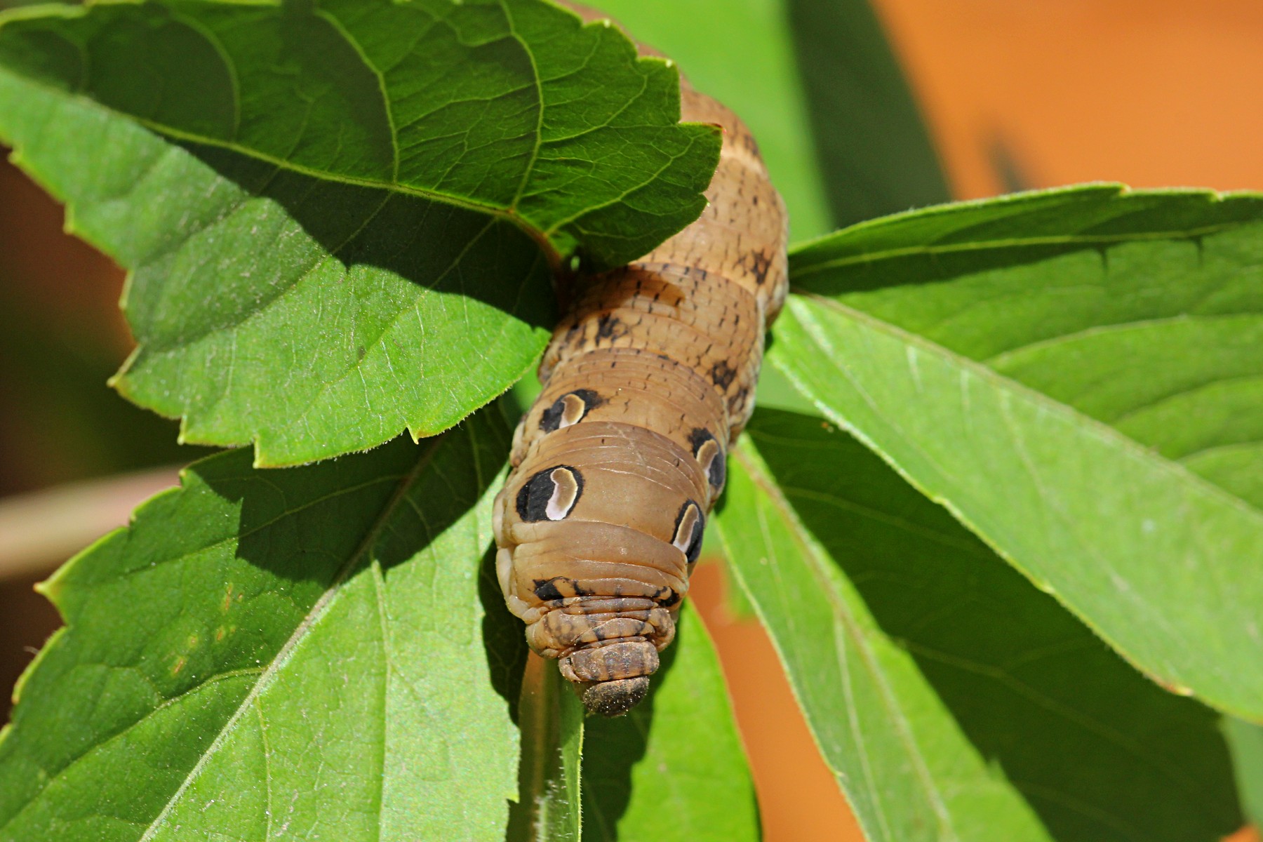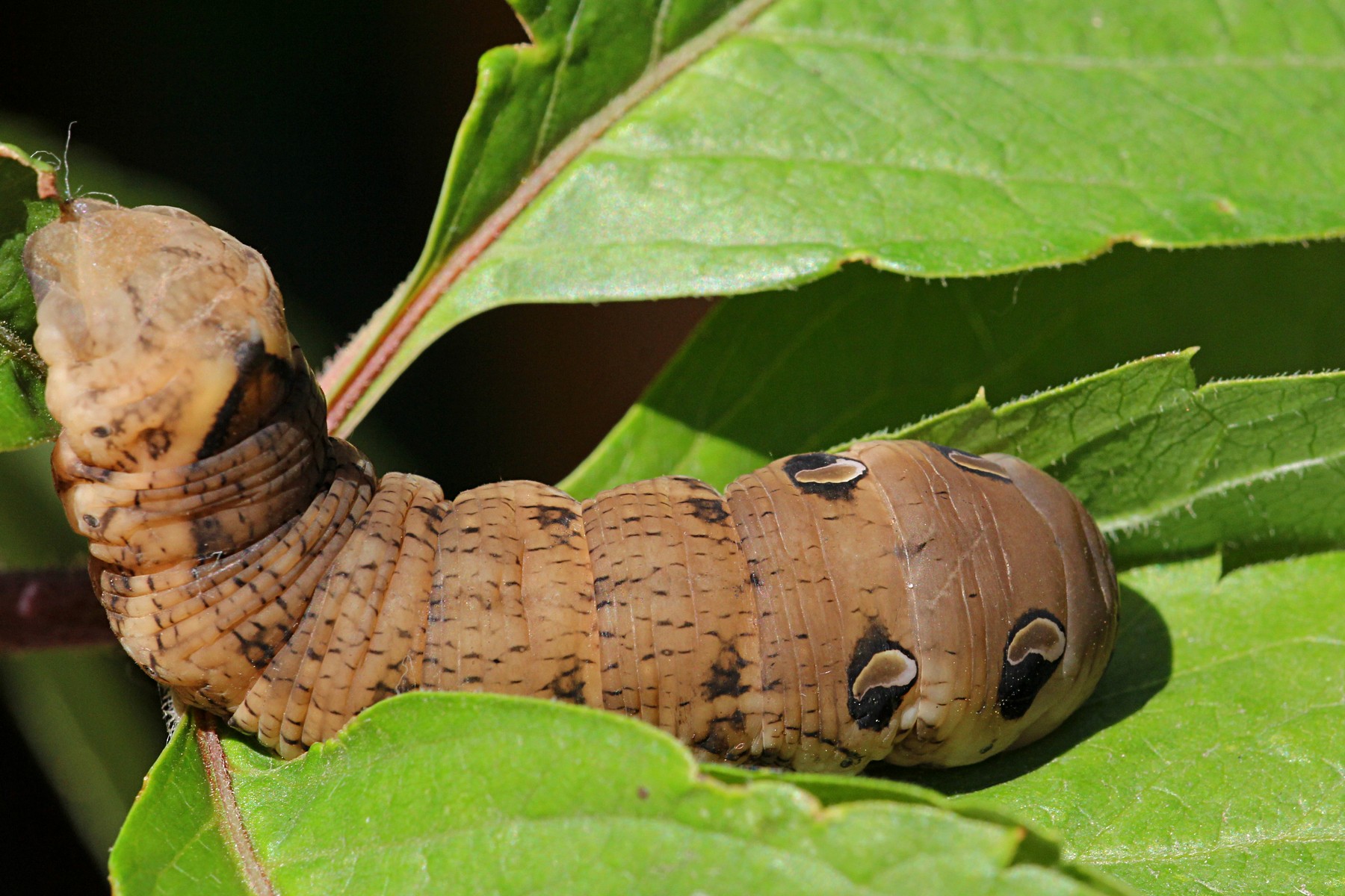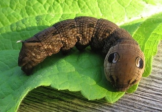 Эта большая зеленая гусеница обитает среди виноградных листьев, и встретить ее можно с середины июня до августа, а потом переходит в стадию куколки.