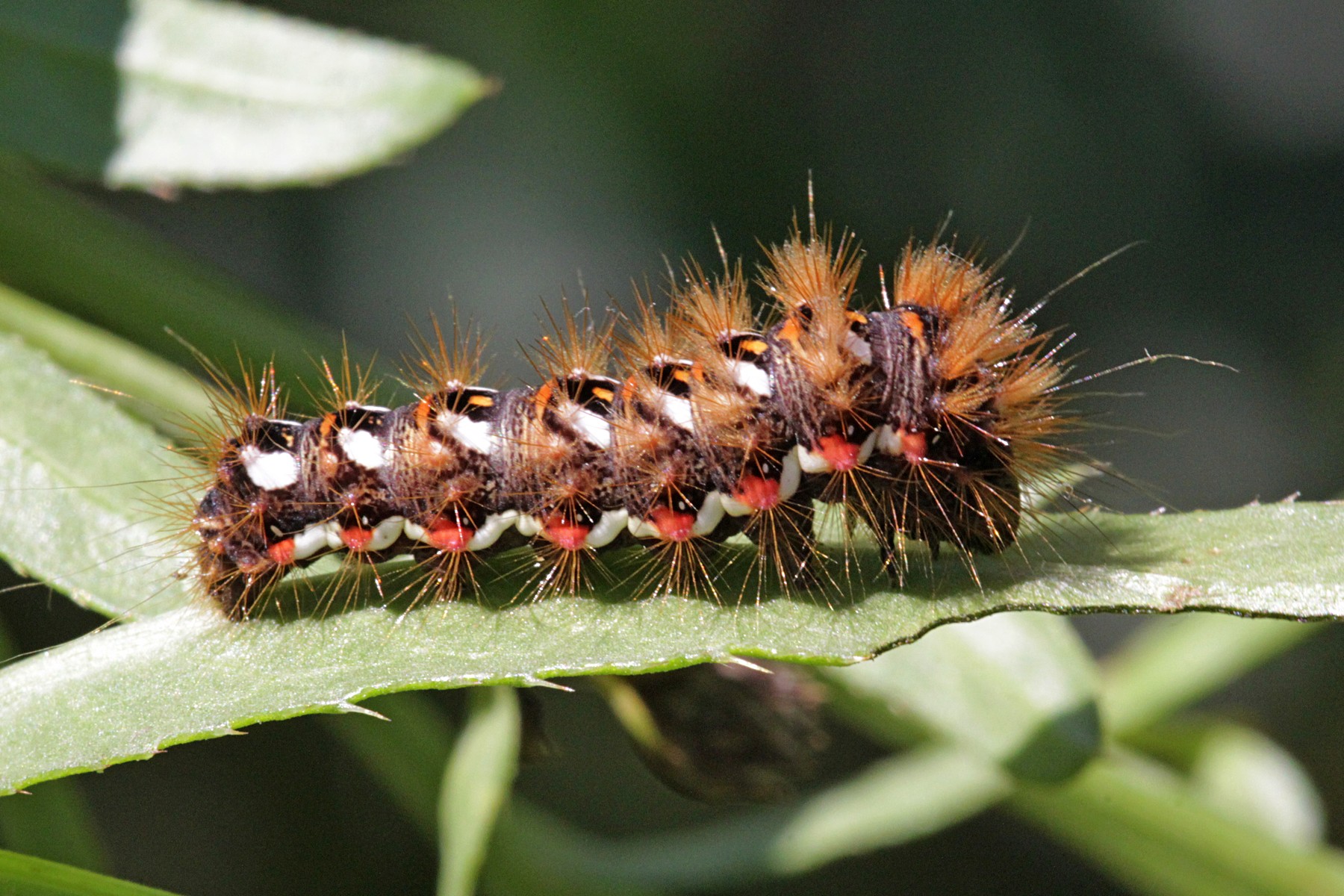 Гусеницы этой красивой ночной бабочки развиваются с июня по август, и имеют необычный, и даже устрашающий внешний вид.