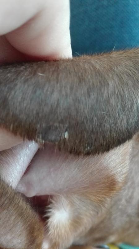 У собаки на кончиках ушей корочки