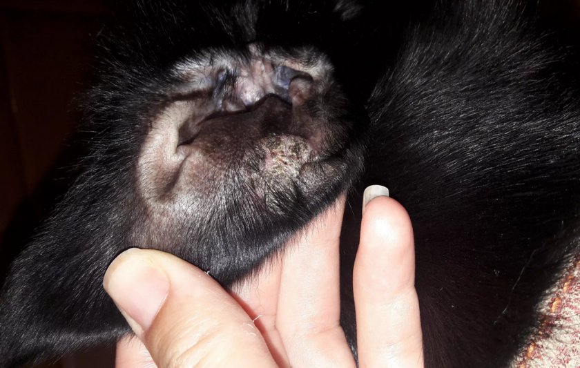 Черная корка на наружных собачьих ушах
