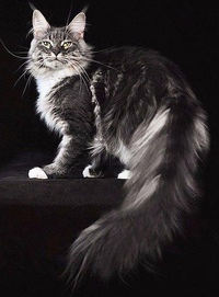 Мейн-кун, или домашняя рысь, имеет кисточки на ушах, а также богатый покров, который придает коту внушительность размера. Помимо огромного пушистого хвоста, у этих длинношерстных кошек есть шикарный меховой воротник. Несмотря на плотность этой шубы в отличие от иных типов она проще в уходе. Она имеет остевой волос и густой, но мягкий подшерсток. За счет этого мейн-кун не боится ни холода, ни влаги. У самок данной породы шуба мягче в сравнении с самцами.