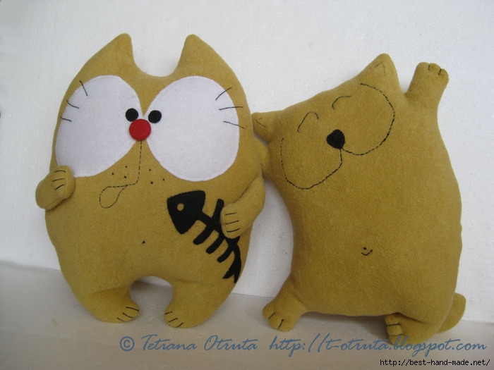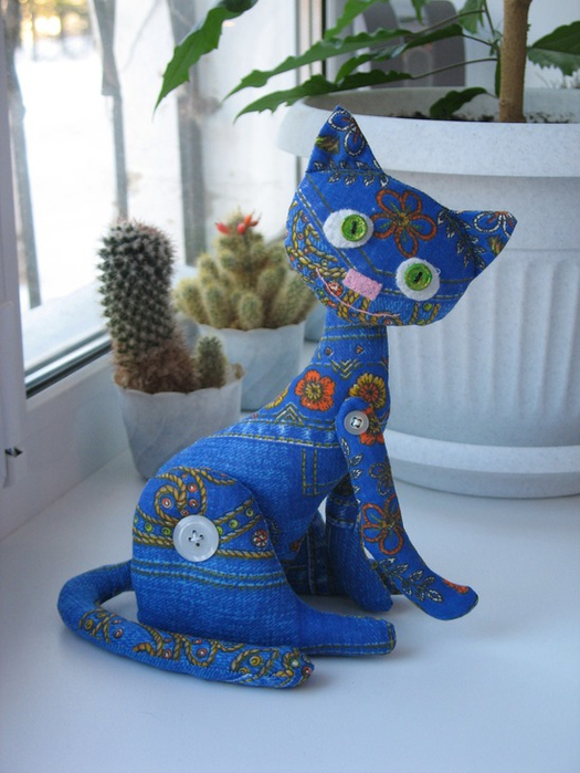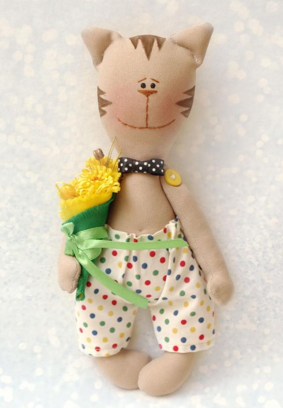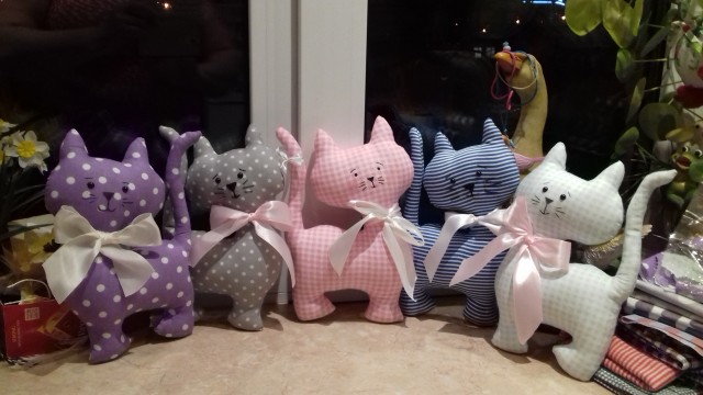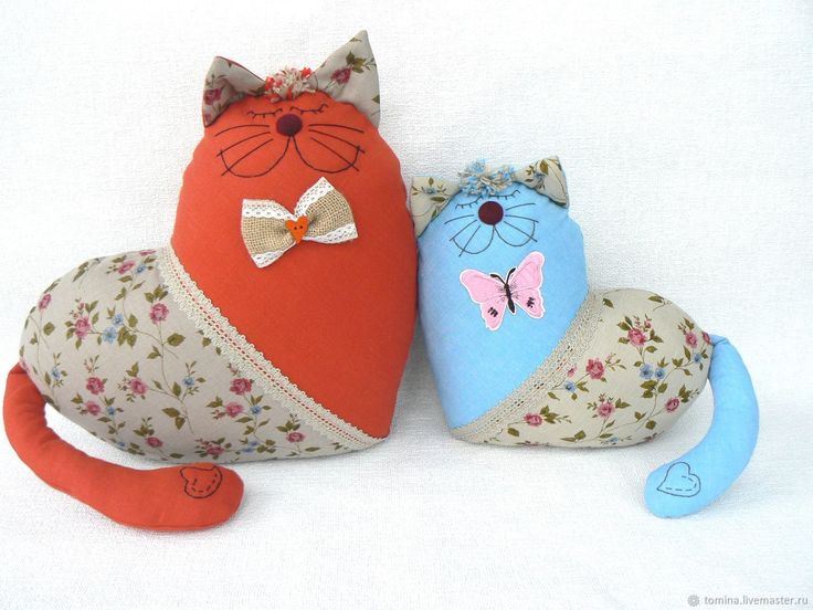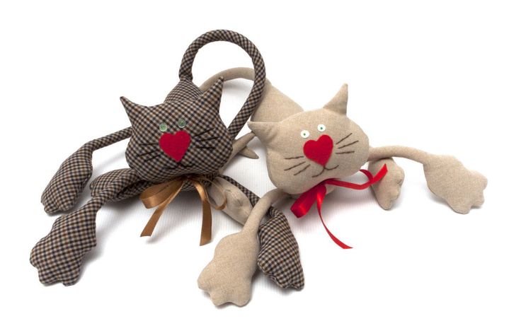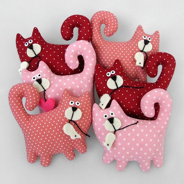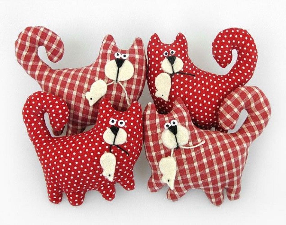 Коты украсят ваш дом и станут прекрасным подарком для любителей животных. Могут быть произвольными выкройки игрушек котов из ткани. Как сделать интересный подарок, теперь вы знаете. Творите и радуйте своих близких приятными мелочами!