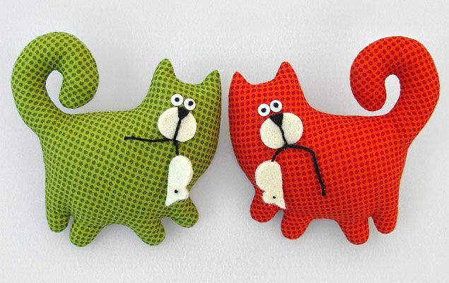 Остальными расходными материалами будут плавкая тесьма, швейная машина, швейные принадлежности, наполнитель, мулине для вышивания и утюг. Эти игрушки понравятся каждой кошке. Мартастюарт
