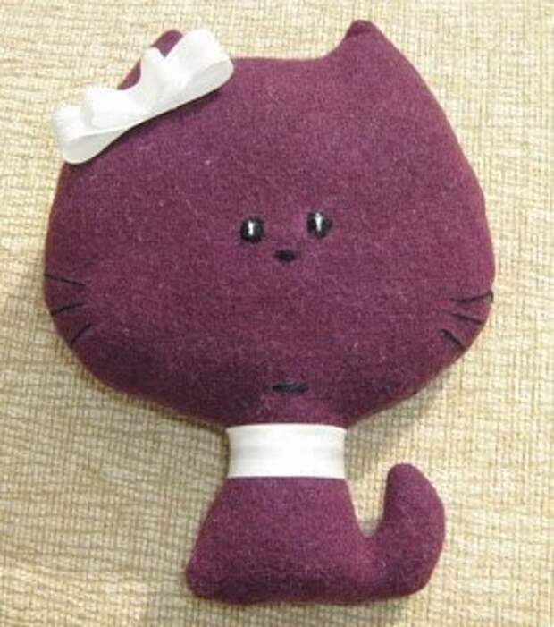 Затратив совсем немного времени, вы сшили симпатичную игрушку-подушку в виде мультяшного котика. Ткань выбирайте любую — однотонную, в клетку или в мелкий цветочек. А если вы сошьете еще нескольких котиков из разных тканей, то у вас может получиться набор подушек, которые наполнят комнату особым уютом и теплотой. Не забывайте, что выкройка кота из ткани может быть произвольной.