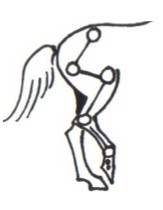 Посредством крестцово-подвздошных суставов энергия, которая формируется от зада, переносится через позвоночник вперед. Кости передних ног короче и прямее, чем задних и имеют только три «пружинных» сустава (розовые точки), которые поглощают и амортизируют ударную силу, что делает передние конечности весьма хрупкими.