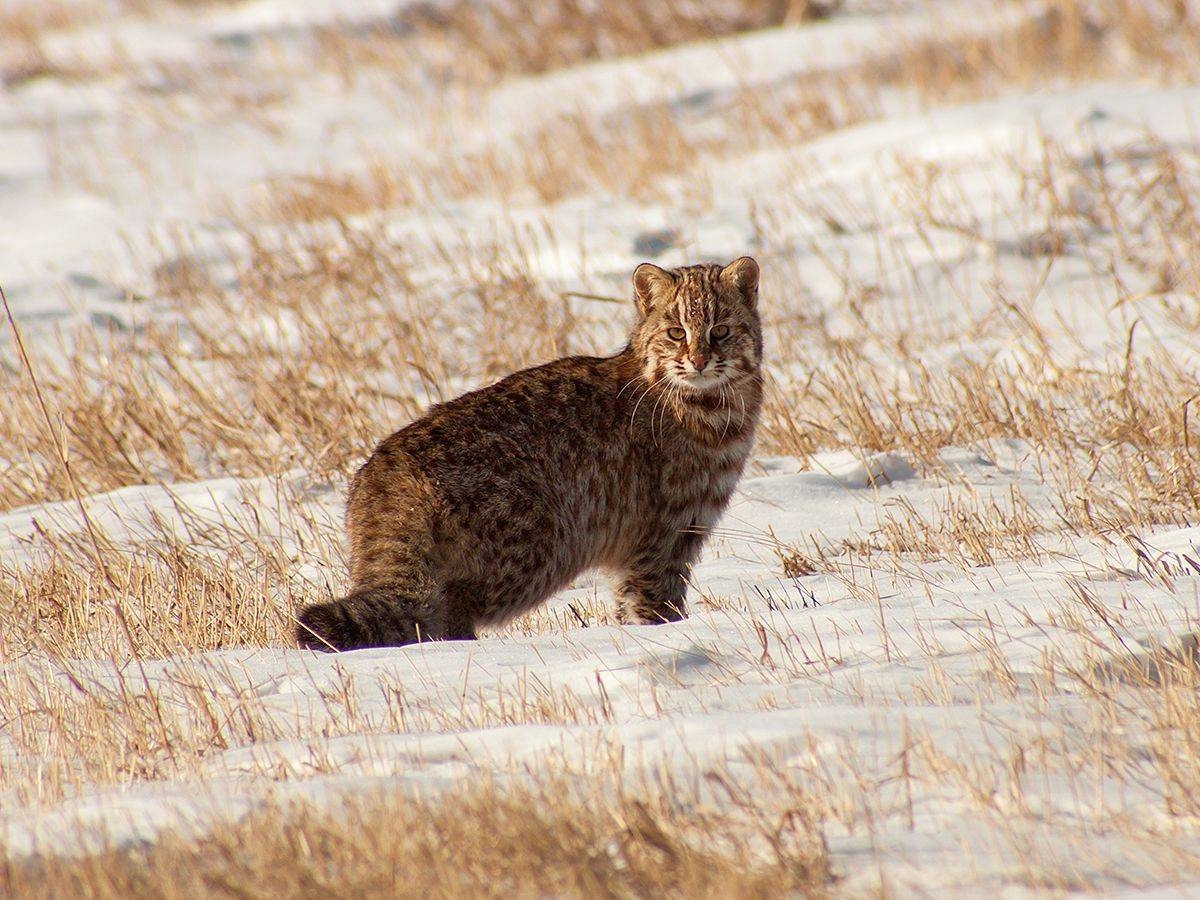 Самый длинноногий среди всех мелких диких кошек — амурский лесной кот, фото это прекрасно демонстрирует. Впрочем, это не помогло ему «подружиться» с глубоким снегом. Во время сильных снегопадов животное может неделями прятаться в убежище, дожидаясь, пока образуется наст.