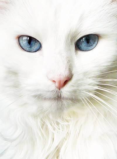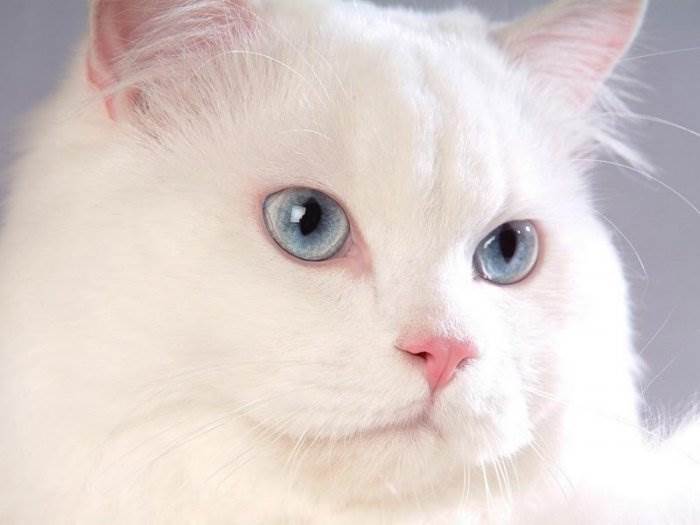 У белых кошек часто встречаются глаза небесно-голубого цвета, красноватые или глаза разного цвета. Это тоже относится к нарушению особых генов, которые присутствуют в организме кошек и функционируют не совсем правильно. Но, несмотря на эти проблемы, кошки с белым окрасом шерсти на протяжении всей жизни чувствуют себя вполне хорошо и комфортно, тем более, если находятся в руках заботливых хозяев. Далее вы можете посмотреть подборку из 16 красивых фото белых кошек.