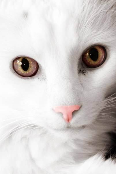 Прежде всего, необходимо понять, что белый кот обязан своим роскошным окрасом генам альбинизма. Котенок-альбинос в принципе не имеет цвета, ген альбинизма отвечает за отсутствие пигментации. Если перед вами настоящий альбинос, то радужка его глаз будет красноватой.
