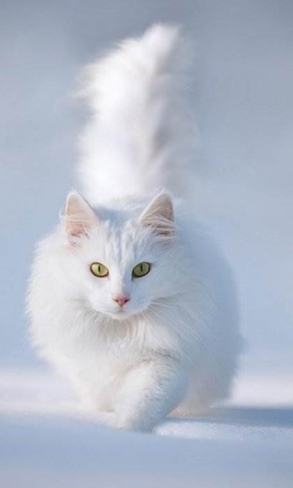 Белая кошка прекрасна. Белоснежным представителем любимой породы хотели бы обладать многие профессиональные заводчики и просто любители. Согласно стандарту, на мехе такой кошки должны полностью отсутствовать полосы или пятна, так же примеси различных оттенков. Предлагаем вашему вниманию ТОП-20 самых ярких представительниц белоснежных мурлык.