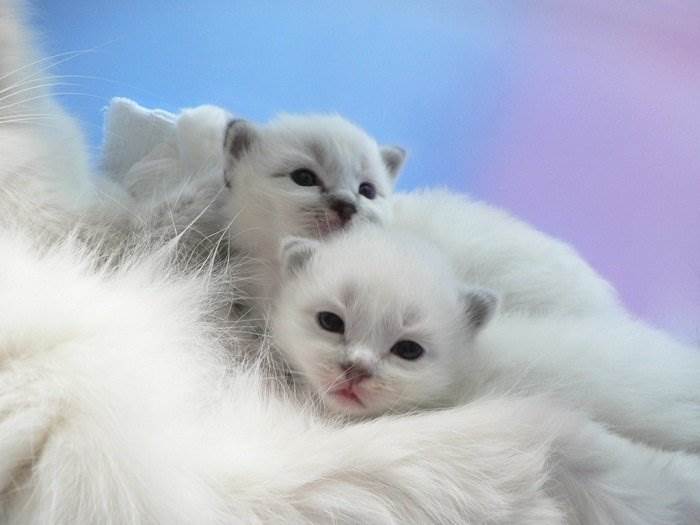 Разведение белоснежных животных – довольно проблематичное занятие, которое имеет свои нюансы практически с каждой породой. Например, для разведения персидских кошек, приобретается пара абсолютно белых представителей породы, но и это может обеспечить вам неожиданность. Ведь белый – это фактически отсутствие пигмента, под него маскируются разнообразные масти. Поэтому котенок может родиться совершенно любого окраса либо с пятнистостью.